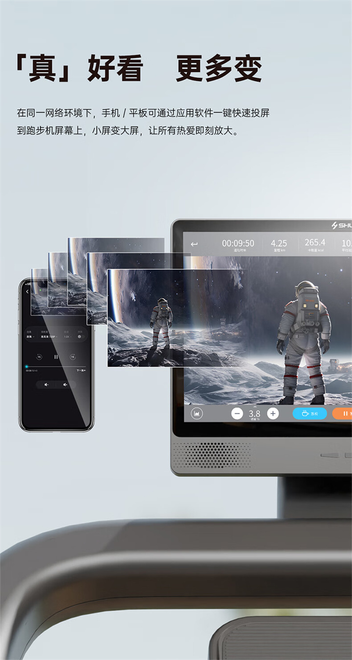 • 产品简介:舒华I5智能家用跑步机是由舒华体育联合中国体育科学学会、上海体育大学运动科学学院教授陆大江等权威机构、专家共同研发设计。独特之处在于它结合国际科学跑步研究理论,能够针对不同用户进行运动能力测试,并根据测试结果生成因人而异的有氧运动处方。这意味着每个用户都能得到一个适合自己的运动方案,从而更好地达到运动效果。这一创新技术可以确保用户在运动过程中能够保持在最佳的区间状态,从而提高运动安全性和有效性。